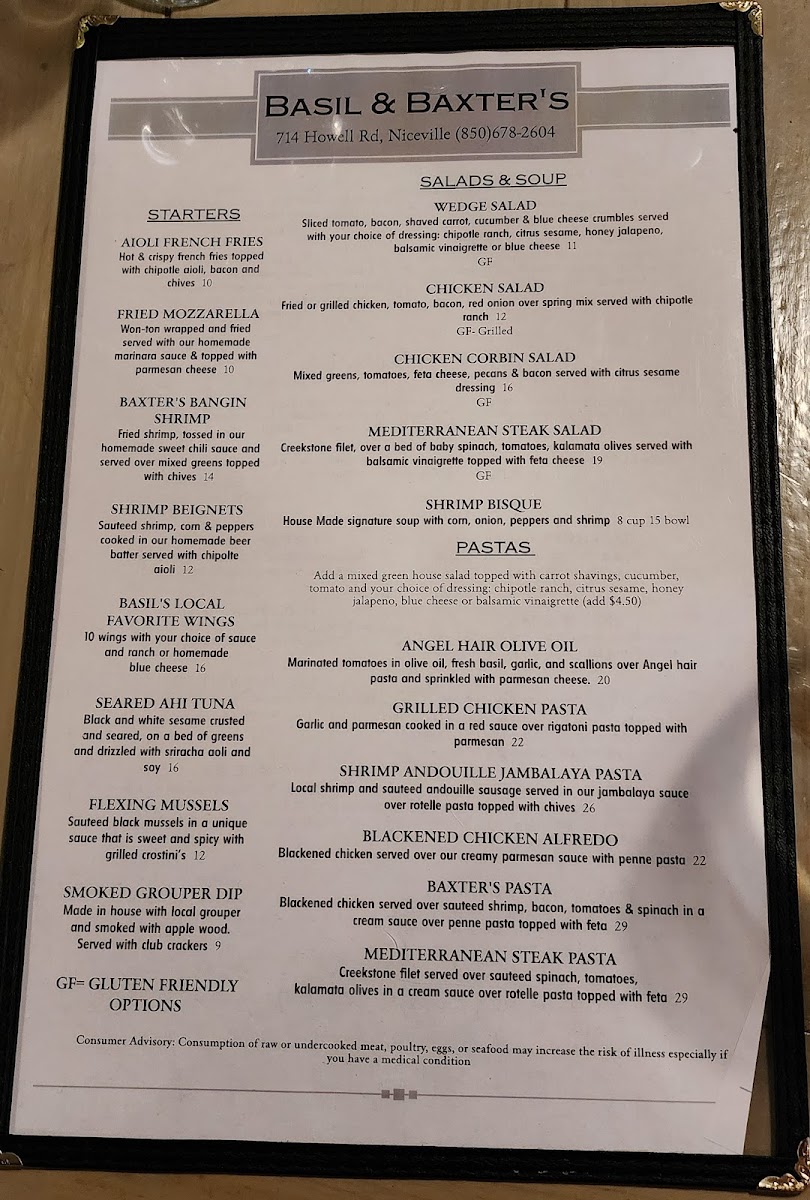 Welcome to Basil & Baxter's Kitchen and Cocktails, where culinary creativity meets Southern charm in Niceville, FL. This delightful establishment offers a menu that tantalizes the taste buds, featuring starters like Shrimp Beignets and Fried Mozzarella, all expertly crafted with fresh ingredients. For pasta lovers, dishes such as Shrimp Etouffee and Blackened Chicken Alfredo promise to deliver comforting, rich flavors that inspire bites of joy.